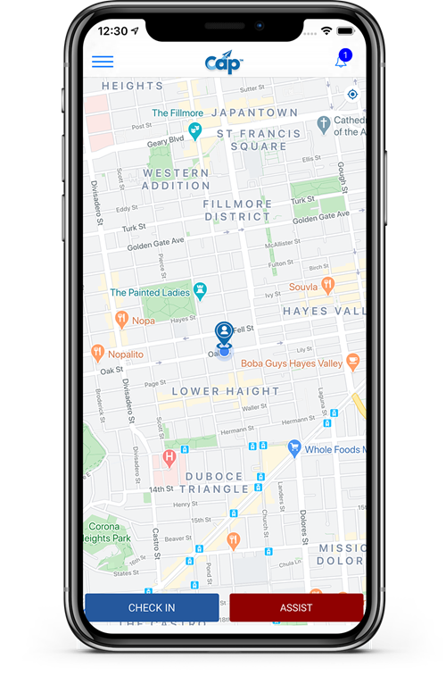 - If you press the Alert button in CAP Advantage™ for help, our Crisis Response Centre will receive your updated geolocation information.